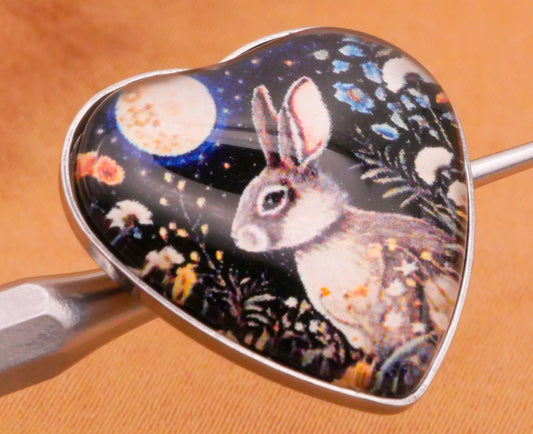 Bunny Rabbit Moon Heart Plastic Metal Button 21mm
