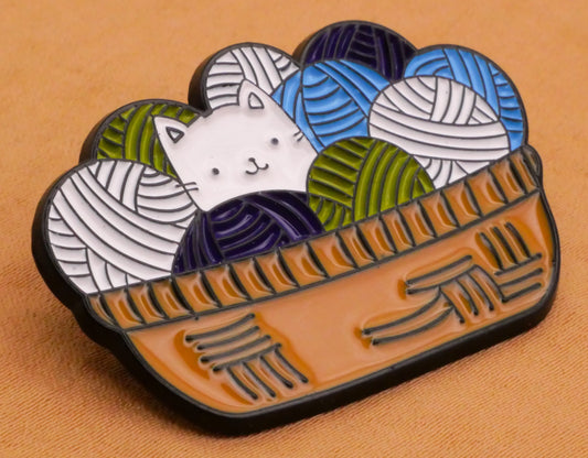 Kitty Cat Yarn Knitting Basket Enamel Metal Large Button 27x39mm