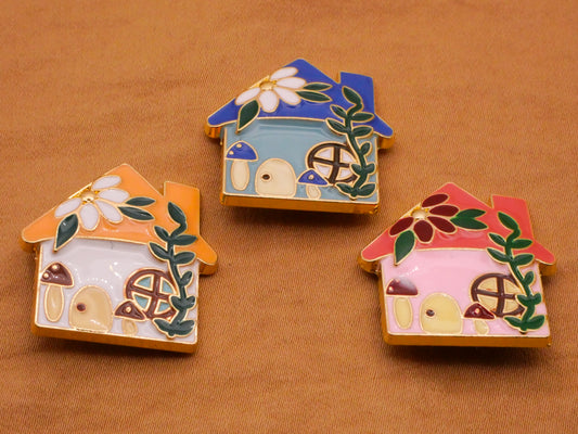 Cottage House Flower Mushroom Enamel Metal Button Various 24x25mm