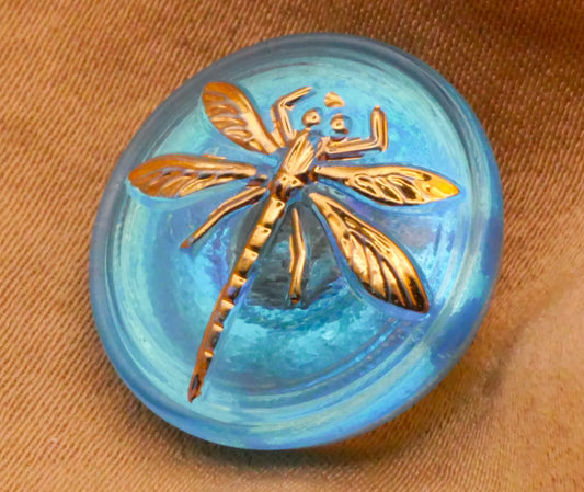 Dragonfly Czech Glass Aquamarine Gold Glass Button 18mm