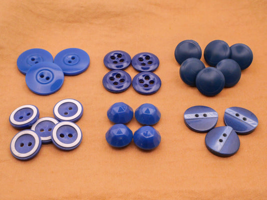 Blue Vintage Plastic Set of Buttons Various 13-18mm