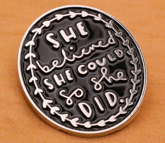 She Believed She Could So She Did Enamel Metal Large Button 28x33mm