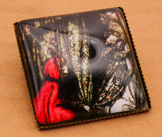 Little Red Riding Hood Wolf Grandma Square Glass Dome Metal Button 26mm