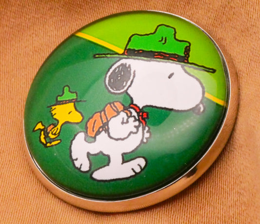 Beagle Scout Woodstock Snoopy Charlie Brown Peanuts Glass Silver Metal Button 27mm