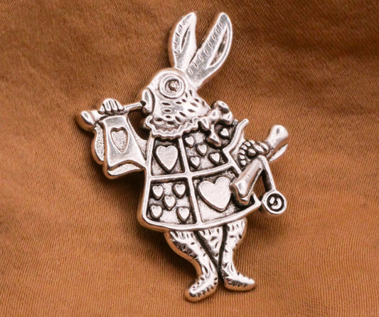 White Rabbit Royal Uniform Heart Silver Metal Large Button 25x33mm