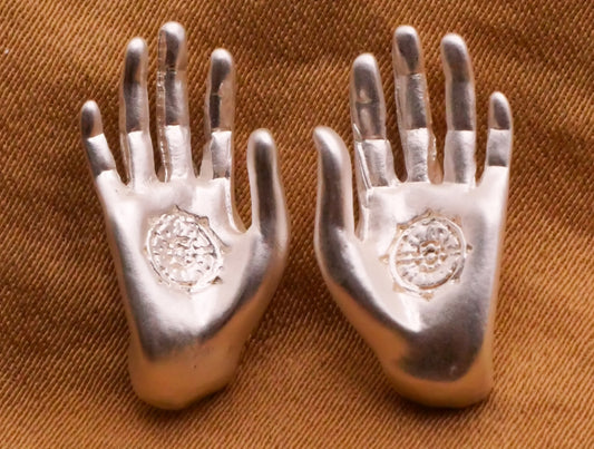 Hands Palms Gold or Silver Metal Pair of Buttons 9x19mm