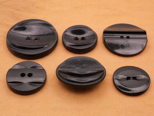 Sculptural Ridge Black Plastic Button Various 22-33mm