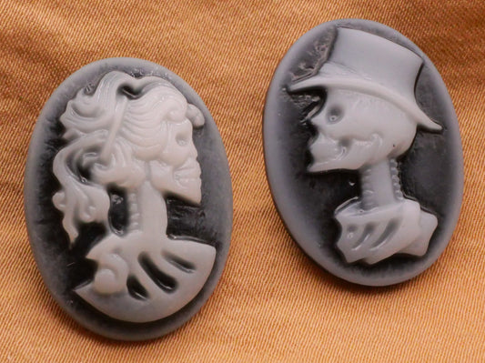 Cameo Skeleton Skull Couple Resin Plastic Pair of Buttons 18x24mm