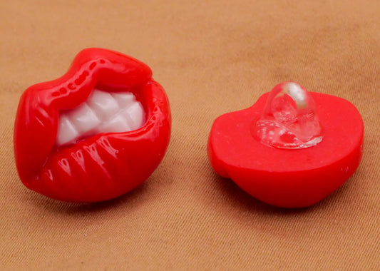 Biting Lips Mouth Red Plastic Pair of Buttons 16x20mm