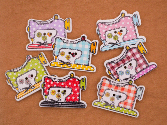 Sewing Machine Colorful Check Polka Dot Wood Assorted Set of Four Buttons 20x26mm