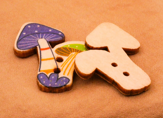 Mushroom Colorful Caps Wood Set of Ten Buttons 27x31mm
