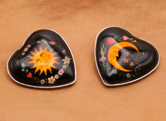 Sun Moon Celestial Flower Wreath Plastic Metal Pair of Buttons 21mm