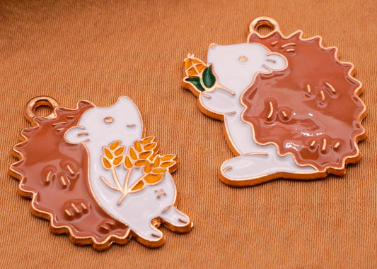 Hedgehog Friends Wheat Corn Enamel Metal Pair of Charms Embellishments 20-26mm