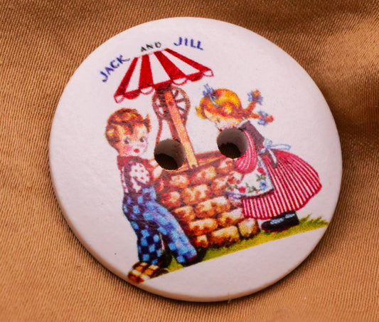 Jack and Jill Nursery Rhyme Wood Sew-Thru Button 30mm