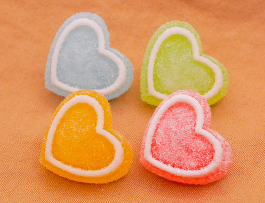 Heart Sugar Coated Gummy Candy Plastic Set of Four Buttons 16x17mm