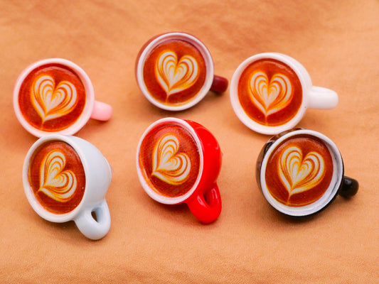 Cappuccino Latte Coffee Cup Heart Foam Plastic Set of Six Buttons 20x26mm