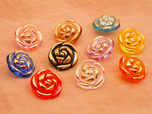 Rose Colorful Gold Edge Plastic Set of Ten Buttons 13mm