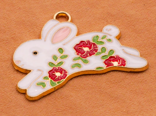 Bunny Rabbit Red Rose Enamel Metal Set of Four Charms Embellishments 19x27mm