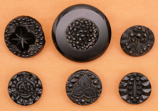 Black Glass Steel Cut Look Vintage Antique Button Various 12-23mm