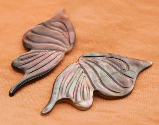 Butterfly Fairy Wings Carved Mother of Pearl Pair of Buttons 20x46mm