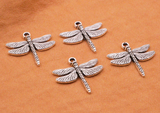 Dragonfly Realistic Silver Metal Set of Four Charms 18mm