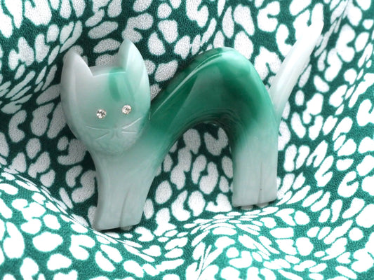 Two-Tone Vintage Cat Button with Rhinestone Eyes 35x54mm