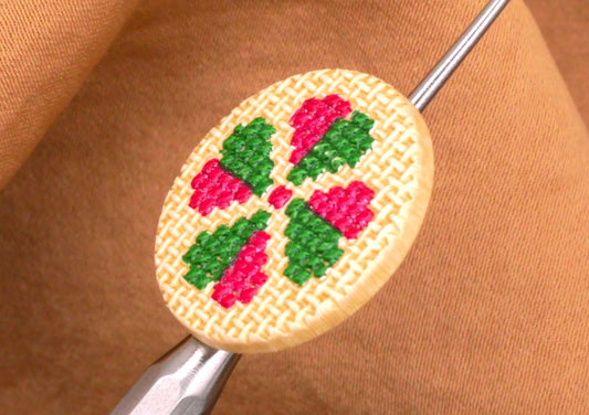 Clover JHB Cross Stitch Look Pink Green Plastic Button 20mm