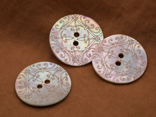 Mother of Pearl Etched Ironwork Look Design Sew-Thru Button 23mm
