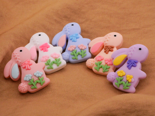 Bunny Rabbit Flowers Bow Set of Five Resin Plastic Buttons 25x29mm