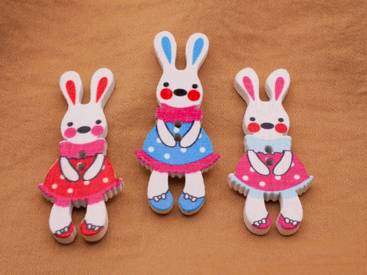 Bunny Rabbit Shy Girl Dress Wood Multi-Color Sew-Thru Buttons Various 17x40mm