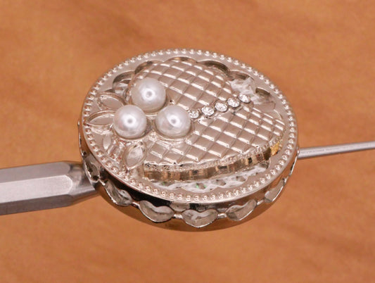 Hat Bonnet Faux Pearl Rhinestone Fabric Inlay Metal Button 23mm