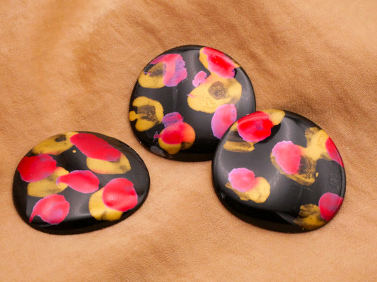 Paint Drops Gold Red Fuchsia Black Plastic Button 31x33mm