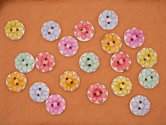 Daisy Flower Multi-Color Set of Ten Wood Buttons 15mm