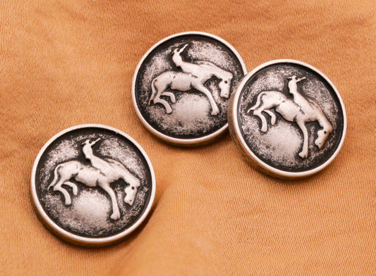 Rodeo Cowboy Horse Antiqued Silver Metal Button 18mm