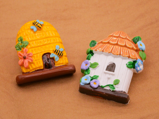 Bee Hive Birdhouse Painted Ceramic Plastic Button 28-35mm