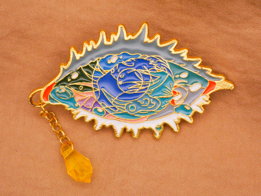 Eye Outer Space Moveable Enamel Gold Metal Double-Shank Large Button 35x61mm