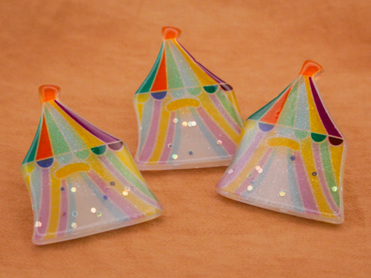 Circus Big Tent Striped Glitter Plastic Button 26x32mm
