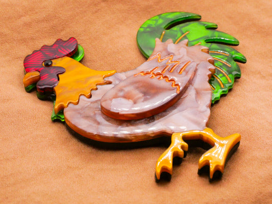 Rooster Extra-Large Marbled Acrylic Plastic Button 62x66mm