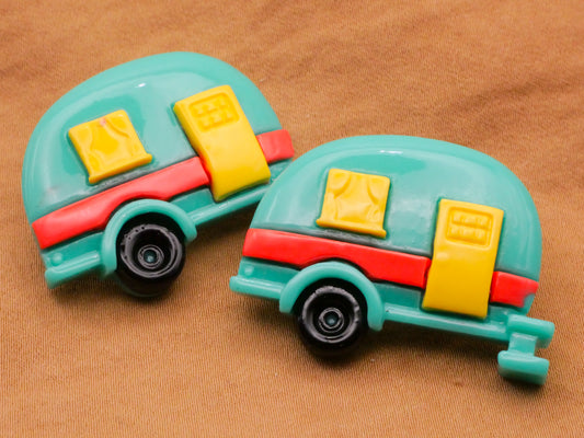 Camper Trailer Camping Teal Yellow Orange Plastic Button 26x36mm