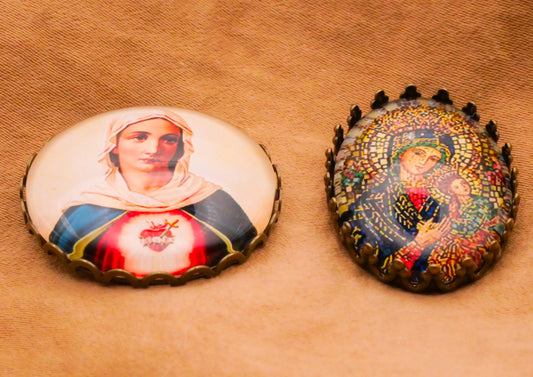 Virgin Mary Glass Lace Crown Dome Bronze Metal Button Various 19-26mm