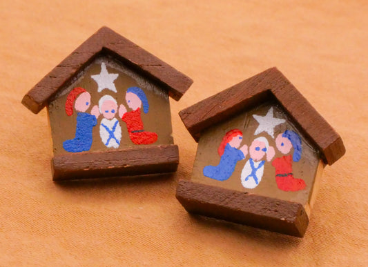 Nativity Hand-Painted Manger Vintage JHB Wood Button 20x23mm