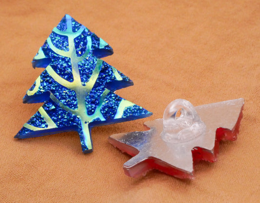 Tree Iridescent Plastic Blue Green Purple Pink Set of Four Buttons 26x28mm