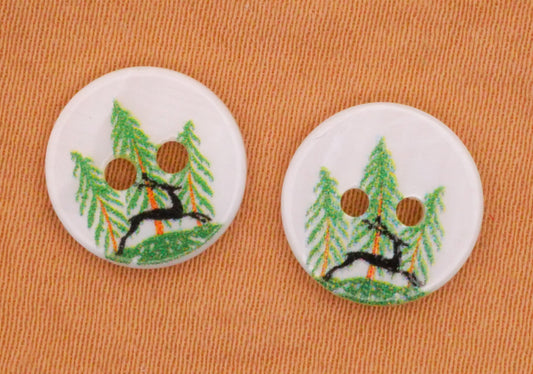 Pine Trees Reindeer Silhouette Mother of Pearl Pair of Buttons Various 12mm