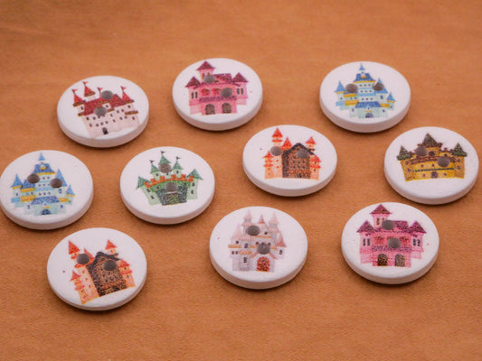 Castle Colorful White Wood Assorted Set of Ten Buttons 15mm