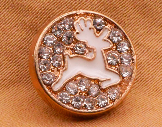 Reindeer Stag Deer Enamel Rhinestone Gold Metal Pair of Buttons 12mm