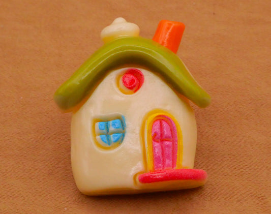 Cottage Home House Moss Green Roof Plastic Pair of Buttons 23x28mm
