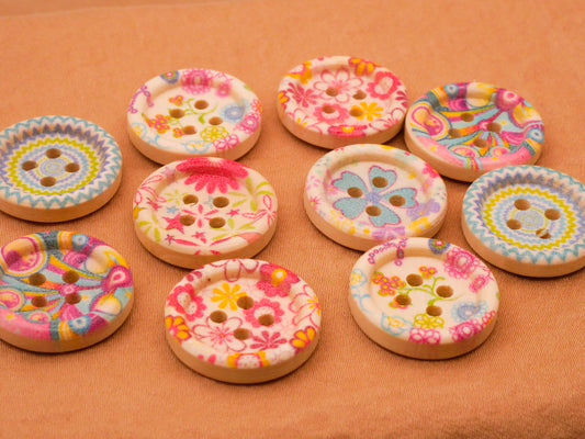 Bright Groovy Flower Designs Wood Set of Ten Buttons 20mmRegular price $2.50 USDRegular priceUnit price / per-