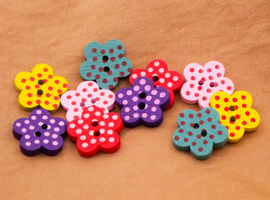 Flower Starfish Polka Dot Colorful Wood Set of Ten Buttons 14mmRegular price $2.50 USDRegular priceUnit price / per-