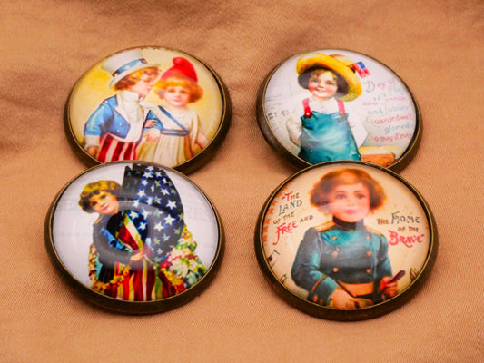 Patriotic Children Vintage Graphics 4th of July Independence Glass Metal Button Various 28mmRegular price $5.00 USDRegular priceUnit price / per-