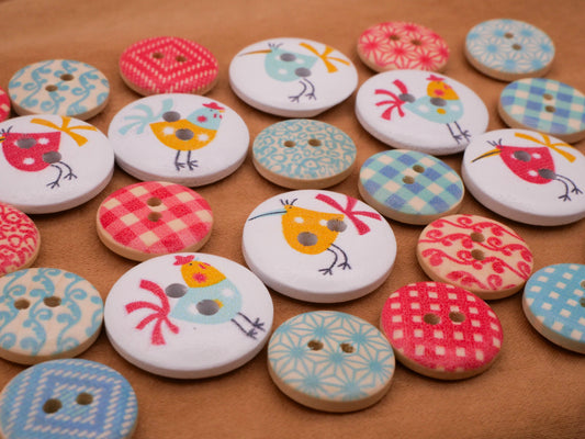 Rooster Chicken Gingham Red Aqua Yellow Wood Assorted Set of Twenty-Five Buttons 15-20mmRegular price $4.00 USDRegular priceUnit price / per-